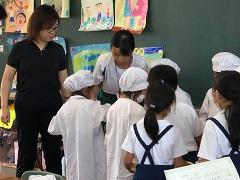 「ごみを減らす計画」。この題材名から何の教科の授業だと想像されますか? 実は算数の授業です。この授業では、これまで学習した「重さの計算」や「1人分の分量を求めるわり算」を使いこなせるかが課題でした。このようなリアリティーのある課題を「パフォーマンス課題」と言うそうですが、今日の4年生の授業は、単に知識や技能を身に付けるだけでなく、それを活用する力を身に付けることをねらいとして行われたものでした。このように一つの切り口(この場合は「環境」)から国語、算数、社会、理科、総合的な学習、道徳、・・・等、いろんな教科等で学習をおこなうことを「教科横断的な学習」といい、小学校では2020年度から全面実施される新教育課程における「カリキュラムマネジメント」の重要な柱となっています。玉東町が「福祉と教育の町」を唱っていることから、本校の場合は「福祉」も教科横断的な学習の一つの切り口になるのではないかと思っています。