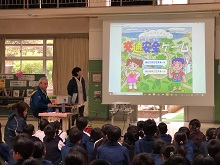 生の演劇を鑑賞することは、山北小の子供たちにとって貴重な体験になったと思います。子供たちが喜びそうな面白い演技や演出をたくさん凝らしていただきながらも、内容は環境問題がテーマの「生物の多様性」や「持続可能な開発」といったメッセージ性の強い作品で、大人の私たちが観ていても考えされられる素晴らしい作品だった思います。しかもミュージカル仕立てで「となりのトトロ」のようなジブリ作品を彷彿とさせる雰囲気もあって、本作品のテーマ曲だと思われる「♪みんなのおうち~♫」を観劇後にくちずさんでいる子がいたのは印象的でした。