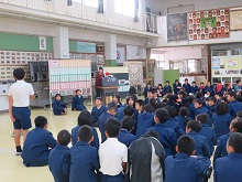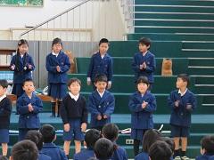 21日(金)の業間に冬休み前集会がありました。校長からは、年末年始の伝統的な行事や習慣等をたくさん経験してほしいという趣旨のお話をしました。その後、4人の代表の児童から後期前半の反省と冬休みの目標についての発表がありました。