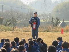23日(水)の業間に避難訓練がありました。子供たちには運動場の南側に避難し、その後消防署の方から、避難時の注意事項の説明や消火器の使い方の指導などがありました。そして、代表の子供たちが実際に練習用の消火器で初期消火を訓練しました。