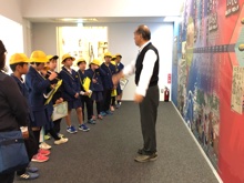 田原坂西南戦争資料館に着きました。前半は資料館の係の方から西南戦争の概要や使用された武器等、田原坂の戦いの状況の説明を聞きました。後半は玉東町教育委員会社会教育課研究員の宮本先生にお越しいただき、二俣台地の砲台跡や横平山・吉次峠戦場跡など玉東町内にある西南戦争ゆかりの史跡等について説明を聞きました。