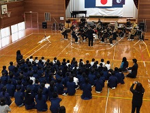 今日の5,6間目に芸術鑑賞会かありました。今年度は熊本県警察音楽隊の皆様にお越しいただき、交通安全講話を兼ねた「安全・安心コンサート」として実施しました。