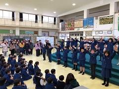 今日の業間の音楽集会は、音楽サークル「野ばら」のミニコンサートでした。まず、野ばらの皆さんに「早春賦」など3曲を披露していただきました。その後、「365日の紙飛行機」を全児童と一緒に歌っていただき、元気のよい子供たちの歌声に野ばらの皆さんのきれいなハーモニーが重なって、何ともいい雰囲気でした。最後には「にじ」を3年生のダンスに合わせて歌っていただきました。