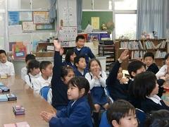 本日の2時間目、県教育委員会が進める小学校英語アドバイザー事業として、玉名教育事務所の生野アドバイザーをお招きして4年生英語の授業を行いしました。4年生はとても活動的でジョー先生からの英語での問いかけによく反応していました。それに合わせて、担任の坂井先生がクラス全体をうまくコントロールしたり、個別指導が必要な子に配慮したりと、絶妙のコンビネーションの見せており、その点について生野アドバイザーからもお褒めの言葉をいただきました。