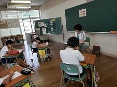 中学生の職場体験もあっという間に3日間が過ぎ、最終日になりました。初日と比べると中学生も随分慣れて、指示されたことだけではなく自分から進んで考えて子供たちと関わっている様子も見られました。キャリア教育の視点から、本校の子供たちにとっても有意義な活動になったと思います。ふうか先生、かな先生、きさ先生、まなみ先生、けいし先生、ありがとうございました。