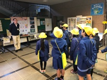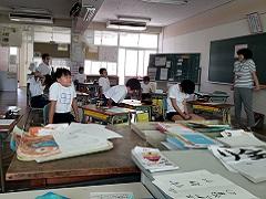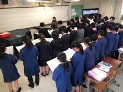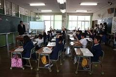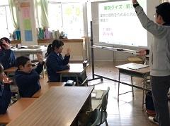 本日の午後、6年生は保護者の方々と一緒に玉東中学校の体験入学に参加しました。まず体験授業として、英語ではヘボン式のローマ字について教えてもらいました。次に音楽では玉東中の校歌を一番だけ練習しました。その後、体育館で生徒会役員の生徒の皆さんから、玉東中の活動の紹介がありました。