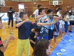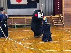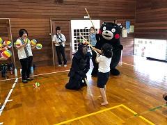 今日(12日)の放課後子ども教室にくまモンがやってきました。なんと3年連続です。今日の活動内容は「剣道にちょうせん」でしたが、面に着けたバルーンを竹刀で割るくまモンのお手本も上手でしたし、1.2年生の子供たちもいつも以上にハッスルしていたようです。