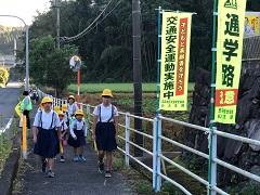 玉東町通学路安全推進会議等で、何回も国・県・町・警察にお願いしていますが、本校の通学路はまだ歩道の整備が十分ではありません。子供たちには「自分の命は自分で守る」という意識を高めていくことが重要ですが、登下校の児童の安全確保のためには大人の支援や指導も必要だと考えています。運動期間中に限らず、引き続き皆様の見守りをお願いいたします。