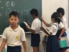 「ごみを減らす計画」。この題材名から何の教科の授業だと想像されますか? 実は算数の授業です。この授業では、これまで学習した「重さの計算」や「1人分の分量を求めるわり算」を使いこなせるかが課題でした。このようなリアリティーのある課題を「パフォーマンス課題」と言うそうですが、今日の4年生の授業は、単に知識や技能を身に付けるだけでなく、それを活用する力を身に付けることをねらいとして行われたものでした。このように一つの切り口(この場合は「環境」)から国語、算数、社会、理科、総合的な学習、道徳、・・・等、いろんな教科等で学習をおこなうことを「教科横断的な学習」といい、小学校では2020年度から全面実施される新教育課程における「カリキュラムマネジメント」の重要な柱となっています。玉東町が「福祉と教育の町」を唱っていることから、本校の場合は「福祉」も教科横断的な学習の一つの切り口になるのではないかと思っています。