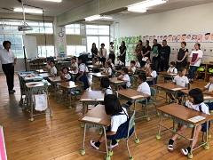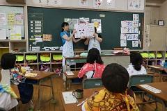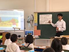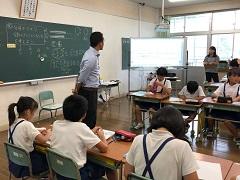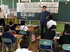 本日の2時間目、県教育委員会が進める小学校英語アドバイザー事業として、玉名教育事務所の生野アドバイザーをお招きして4年生英語の授業を行いしました。4年生はとても活動的でジョー先生からの英語での問いかけによく反応していました。それに合わせて、担任の坂井先生がクラス全体をうまくコントロールしたり、個別指導が必要な子に配慮したりと、絶妙のコンビネーションの見せており、その点について生野アドバイザーからもお褒めの言葉をいただきました。