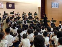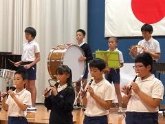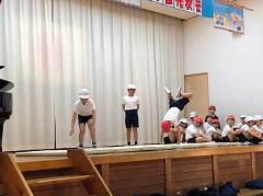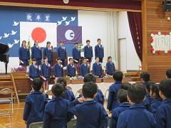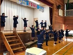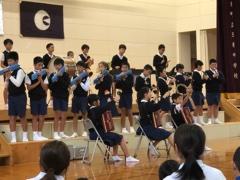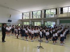 今日の業間に音楽集会があり、1年生が発表してくれました。発表した曲は3曲で、1曲目の「とんくるりん ぱんくるりん」は振り付けをしながら可愛く歌ってくれました。2曲目は「子犬のマーチ」を鍵盤ハーモニカで演奏。3曲目は手話を入れながら「世界に一つだけの花」を歌いました。入学当初と比べると、1年生もずいぶん成長したなと感じています。