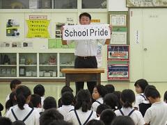 昨日(16日)の業間に、後期の始業式を行いました。まず、校長から「スクールプライド」について、修学旅行などの旅行的行事の場面を想起させながらお話をさせていただきました。その後、4人の代表児童が後期の目標を発表してくれました。4人ともその子らしいしっかりした目標設定ができていて、感心しました。
