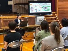 様々な検査を行っている間、保護者の皆様には、体育館で学校及び教育委員会から説明とお願い、さらに玉名教育事務所スクールソーシャルワーカーの今﨑先生の講話を行いました。
