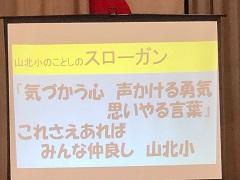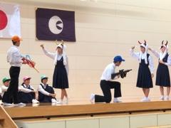 今年度の教育の日は、担当校が山北小ということもあって、全体の司会進行は企画委員会のメンバーが務めています。吹奏楽部の演奏は、保育園児や小学校低学年の児童にあわせてアニメメドレーや寸劇など工夫もされていて楽しいものでした。