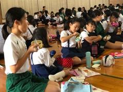 5年生は、環境学習のまとめとして自分たちにできることを考え、廃油石けん作りを行いました。廃油は以前共同調理場からいただいたものを使い、子供たちは完全防備で行いました。出来上がった廃油石けんを校長も一ついただきましたが、出来映えは見事です。これらは共同調理場や教育委員会等のお世話になった皆様にお配りした他、中央公民館(図書館)の入り口にも置いて、自由にお持ち帰りいただけるようにしました。