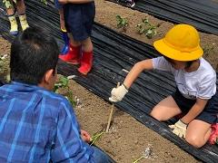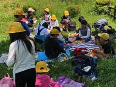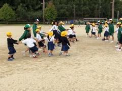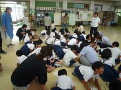 午後はレクレーションとして、縦割りのグループごとに遊びました。「花いちもんめ」や「だるまさんが転んだ」、「鬼ごっこ」が多かったようです。残念ながらにわか雨のため、早めの終了になってしまいましたが、楽しい交流ができたと思います。