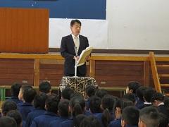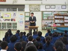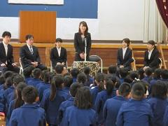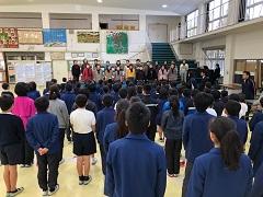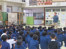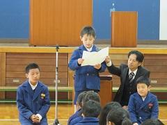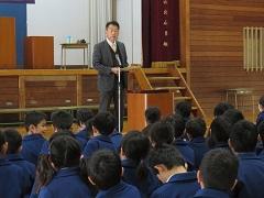 21日(金)の業間に冬休み前集会がありました。校長からは、年末年始の伝統的な行事や習慣等をたくさん経験してほしいという趣旨のお話をしました。その後、4人の代表の児童から後期前半の反省と冬休みの目標についての発表がありました。