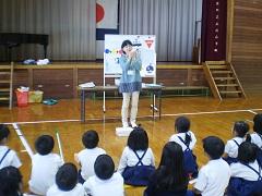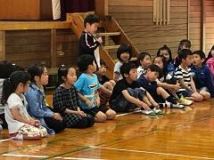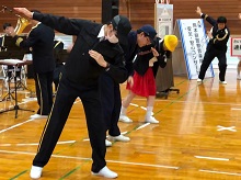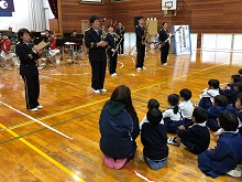 まず、学習センターで「交通安全ゲーム」を使った講話がありました。その後、体育館へ移動し、コンサートになりました。アニメの主題歌や映画の挿入曲、楽器の紹介、山北小校歌、流行曲、クリスマスメドレー等に加え、子供たちの安全を守るための「いかのおすし」の寸劇をしていただきました。さらにカラーガード「カラーリリーズ」のフラッグ演技、アンコールでくまモン体操まで披露していただき、子供たちも大満足そうでした。とても楽しく、心が豊かになる行事だったと思います。