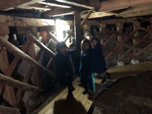 八千代座に来ました。まず、係の人から八千代座の歴史や建物の作りについてお話を聞きました。その後、八千代座の中を見学して周り、舞台で花吹雪を浴びたり、回り舞台を回してみたりしました。
