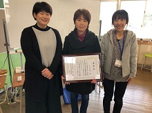 本校で読み聞かせを行っていただいているボランティアサークル「山北苺」が、この度その功績を認められ、熊本県図書館活動振興協議会から表彰いただきましたので、今日の読み聞かせの後、校長より表彰状を伝達させていただきました。