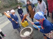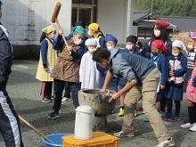 「もちつき」をしました。3つの臼を使い、2時間目に2・4・5年、3時間目に1・3・5年が縦割りのグループで行いました。校長は、今までいろんな所で「もちつき」を経験してきましたが、これまでの経験と比較して「山北小の子供たち(特に高学年)は、もちの付き方がうまいな」と思いました。何でも実際に経験してみることが大事で、あらためて山北小の子供たちは恵まれているなと感じました。本日も、平日にも関わらず、たくさんのPTAの役員の皆さんにお世話になり、誠にありがとうございました。