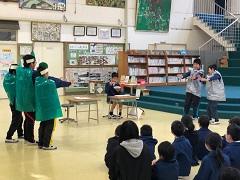 1月24日が「学校給食記念日」と定められていることから、本校では今週を給食週間としています。そこで今日(22日)の児童集会は、給食委員会の発表となりました。今回は特に、ビタミンを多く含む野菜をしっかり食べようということで、楽しい劇もしてくれました。なお後日、玉東中所属の学校栄養職員の先生を講師にお呼びして、食育の授業を全クラスで実施する予定です。