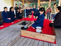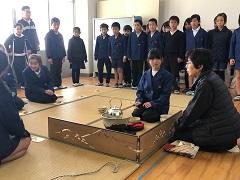 本日(13日)の5時間目、森の学校のあずま屋で、6年生の卒業をお祝いするお茶会を開きました。お茶クラブの3人がお手前を披露し、6年生の友達や保護者の皆様にお茶をふるまいました。今回もPTA会長・副会長をはじめ保護者の皆様には、お座敷の準備やお湯沸かしなど大変お世話になりました。また、講師の安成様には、日頃のクラブ活動に加え、本日も子供たちをご指導をいただき、誠に感謝申し上げます。