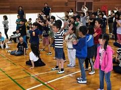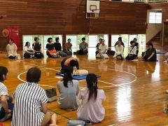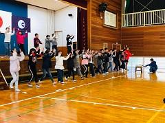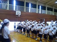 これで午前の部は終了です。縦割りクループでの昼食のため、町営体育館へ移動します。