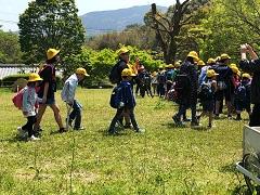 その後、半高山公園までの送別遠足に出かけました。片道約4.2Kmの道のりでしたが、子供たちは歌を歌ったりしながら楽しく歩いていきました。到着後、見晴らしのよい半高山頂上でお弁当やおやつを食べ、子供たちは思い思いに6年生との交流を深めていました。今日は絶好の遠足日和で、思い出に残る気持ちよい一日となったと思います。