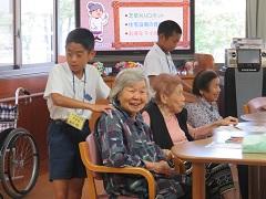 12日(金)、6年生は2回目の葉山苑での福祉交流を出かけました。今回は5日(金)の1回目の交流の振り返りや反省を受けて実施したので、ずいぶんお年寄りにうまく関わることができていたようです。また交流体験の前には2回の事前学習(認知症サポーター認定講習等)を行っていますが、これらは玉東町福祉協議会の全面的なご指導ご支援によって行われたものです。