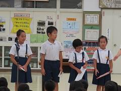 夏休み明け集会を行いました。校長の「メディアコントロール」についての講話の後、2年、4年、6年の代表の児童が、夏休みの振り返りと前期後半の目標について発表してくれました。