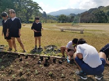 先週、業間に花壇の植え替えを行いました(集団宿泊教室に行っていた5年生は後日実施)。種から育てた花苗(パンジー・ビオラ、金魚草、なでしこ、ノースポール等)やチューリップの球根、合わせて約4,000本を最終的に定植する予定です。写真は一番広い6年生の花壇(約6坪)の様子ですが、さすが6年生。ここだけでも400本はある花苗を手際よく植えていました。目指すは「玉東町のハウステンボス」。6年生の卒業式や新入生の入学式をいっぱいの花に囲まれてできたらいいなと思っています。