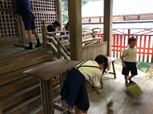 通学合宿最終日。使用させてもらった公民館の掃除をした後、退所式を行いました。