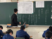 池田教諭の問いかけに一生懸命に答えようとする子供たちの姿には感動を覚えます。また、5年生はこの8ヶ月でずいぶん力をつけてきたなと感じていますが、そこには今日のような授業の積み重ねがあることも改めて認識しました。講師にお招きした玉名教育事務所の有馬指導主事からも、「全体を見ながら個人を見ている」「間の取り方やコーディネートがうまい」など、たくさんお褒めの言葉をいただきました。