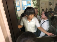 様々な検査を行っている間、保護者の皆様には、体育館で学校及び教育委員会から説明とお願いを行いました。