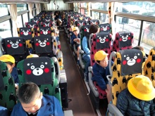 くまモンのバスで出発です。バスの中では、歌を歌ったり、クイズを出し合ったりしました。そうしているうちに大牟田市動物園に到着です。時間調整で、集合写真を撮りました。