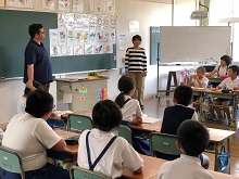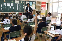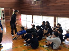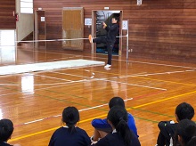 玉東中の先生をゲストティーチャーに(6年生・体育)