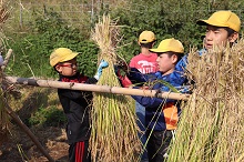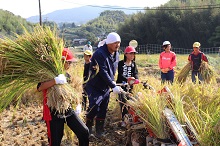 昨日の5.6時間目、5・6年生は稲刈りを行いました。子どもたちは手刈りだけではなく、バインダーを使った収穫も体験しました。刈った稲はかけ干しにしました。聞いた話では、逆さに吊すことで栄養をお米に行き渡らせるとか。当日は5・6年の保護者の方だけではなく、元PTA会長の清田さんにもご協力・ご指導をいただきました。「山北ってすごいところだな!」と改めて感じています。