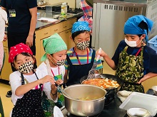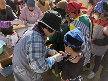 いきなり団子作りが始まりました。数えてみると参加されている地域の方や保護者の数が児童数と変わりません。「こんなに地域に支えたれた学校は、日本国中探してもなかなか見つからない」と思います。また、同じいきなり団子でも、地区によって微妙に作り方や形、大きさが違うのがおもしろいなと思いました。
