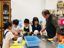 通学合宿も最終日となりました。「朝食の準備も後片付けも自分たちで」と言いたいところですが、その様子にはかなり個人差があり、普段のご家庭の習慣が出てしまっているいようです。そういう中でも、子供たち自身にさせようと、教育長先生自ら「して見せて」いただき、我慢強く子供たちの成長を促していらっしゃる姿には、本当に頭が下がる思いです。