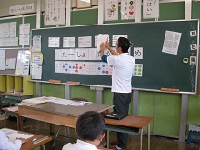 1年生の担任で本校研究主任の西﨑教諭は、校内研究のリーダーとして、普段の授業でも積極的に授業改善に取り組んでいただいています。その一例を学級通信「いちねんせい」の中に見つけましたので紹介します。以下は、その学級通信からの引用です。