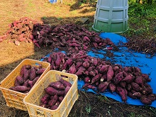 今日(24日)日の2時間目、1・2年生は芋掘りをしました。今年は1・2年生の顔と変わらないくらいのビッグサイズの芋が穫れ(右の芋の写真はまだ掘っている途中です)、子供たちも大喜びでした。収穫した芋の一部は、11月1日のふれあい活動で作る「いきなりだんご」の材料として活用します。今回の活動も隊長の相良さん夫妻をはじめ、多くの保護者の皆様にご協力いただき、誠にありがとうございました。