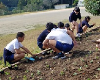 先週、業間に花壇の植え替えを行いました(集団宿泊教室に行っていた5年生は後日実施)。種から育てた花苗(パンジー・ビオラ、金魚草、なでしこ、ノースポール等)やチューリップの球根、合わせて約4,000本を最終的に定植する予定です。写真は一番広い6年生の花壇(約6坪)の様子ですが、さすが6年生。ここだけでも400本はある花苗を手際よく植えていました。目指すは「玉東町のハウステンボス」。6年生の卒業式や新入生の入学式をいっぱいの花に囲まれてできたらいいなと思っています。