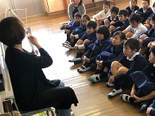 伝承遊びの活動にうつりました。竹とんぼ、竹馬、竹笛、あやとり、お手玉等、地域の方に教わりながらやってみました。私(校長)は、メンコに入って一緒に遊びましたが、つい「昔取った杵柄」を見せてしまい、子供たちから「大人げない」と言われてしまいました。