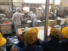 永田製パンに到着しました。担当の方にパン工場の施設設備やパン製造の過程、製造の際に注意することなどを聴きました。子供たちは、たくさん質問もしていて、それ自体はいいことですが、今、説明があった同じ内容を直後に質問している子がいて、まずしっかり説明を聞くことが大事だと指導しました。