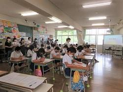 環境センターの方による環境学習や語り部講話など、とても貴重なお話を聞くことができました。最後には本校児童が語り部さんにお礼の言葉を述べました。「水俣病差別だけではなく、どんな差別も許さない社会をつくっていきたい」という思いを堂々と伝えていました。