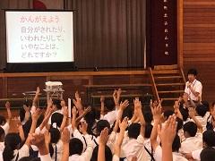6月は「心のきずなを深める月間」として県下一斉にいじめの防止等の取組を行っていますが、その一貫として山北小でも6月12日(水)に人権集会を行いました。