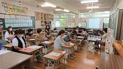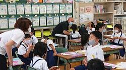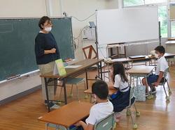 入学して3ヶ月になりますが、にこにこと笑顔で授業に取り組む姿を見ていただくことができました。子供達も久しぶりに保育園の先生方に会うことができてうれしそうにしていました。卒園生の大半を占める本校の子供達(2~6年)生の授業も参観していただき、成長した姿を見せることができました。