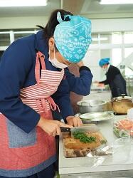 アスパラや人参をゆでたり、ベーコンを焼いたりと少し手間のかかる調理でしたが、班の人と協力してできていました。