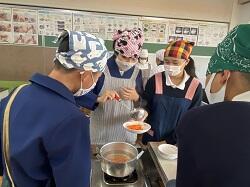 ベーコンが破け、巻いていた野菜がバラバラになるハプニングがあった班もありましたが、これも勉強です。今回で2回目の調理実習でしたが、子供たちは本当に手際よく調理することができました。